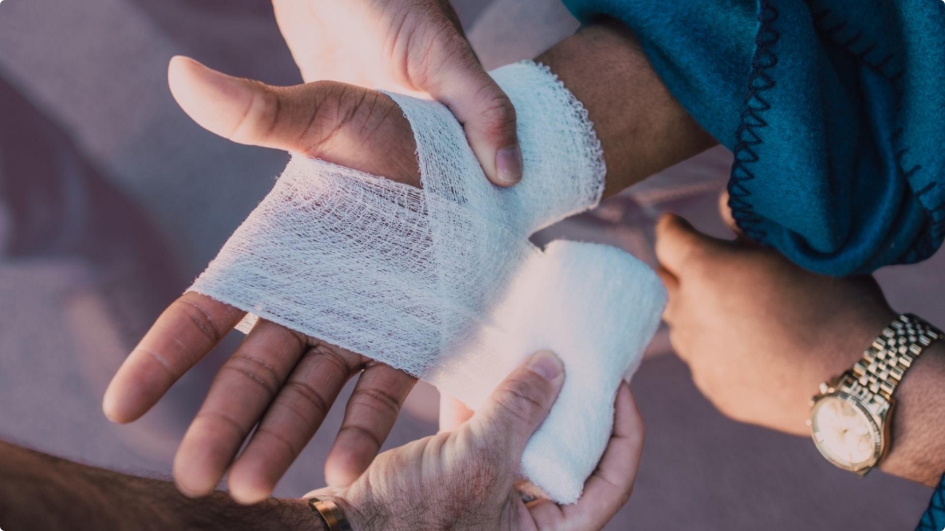 - Control de hemorragias, apósitos, torniquete cuando proceda y técnicas de vendaje.