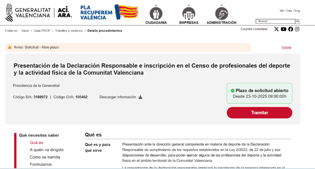 Desde COEDPI os traemos la guia para realizar la Declaración Responsable e inscribirse en el censo de profesionales del deporte de la comunidad valenciana.