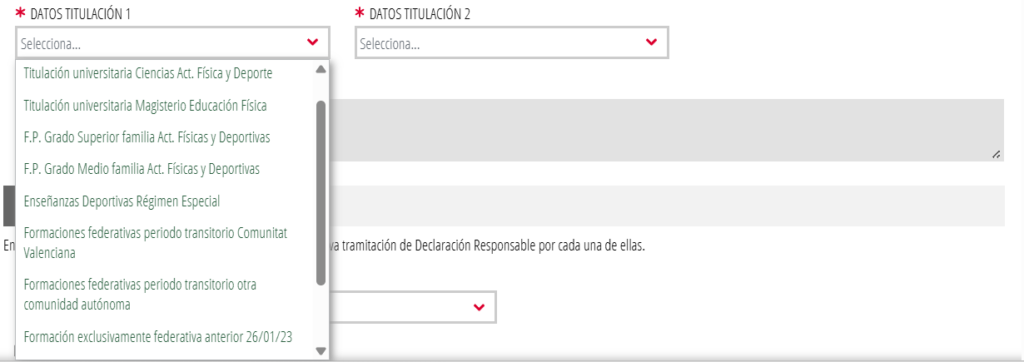Si se disponen de formaciones federativas en periodo transitorio debéis seleccionar una de estas opciones: